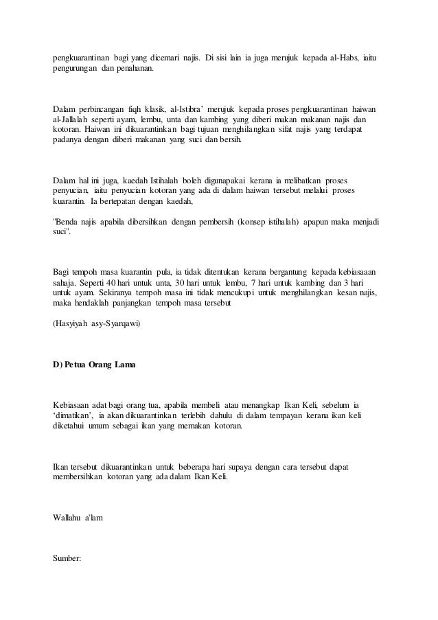 Mar 12 2021 Waktu karantina adalah untuk membersihkan bau tidak sedap dari hewan Al-Jalalah akibat terkontaminasi najis. إذا ترك العبد الدعاء للوالدين فإنه ينقطع الرزق - رواه الديلمى - تحذيب أطراف الحديث ص 24. Lihat Majlis al-Ala Li al- Syuun al-Islamiyyah 1309 H.