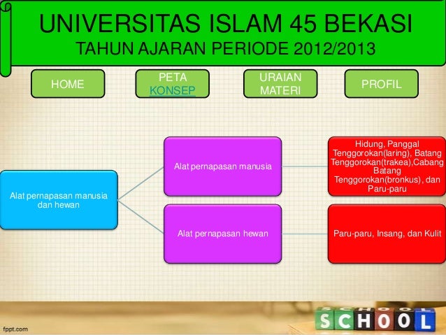 Metode pembelajaran IPA yang tepat dapat meningkatkan hasil belajar siswa. Peparu contoh kucing burung buaya katak paus. UNIVERSITAS ISLAM 45 BEKASI TAHUN AJARAN PERIODE 20122013 HOME PETA KONSEP URAIN MATERI PROFIL ALAT PERNAPASAN MANUSIA DAN HEWAN Ilmu Pengetahuan Alam Kelas V 2.